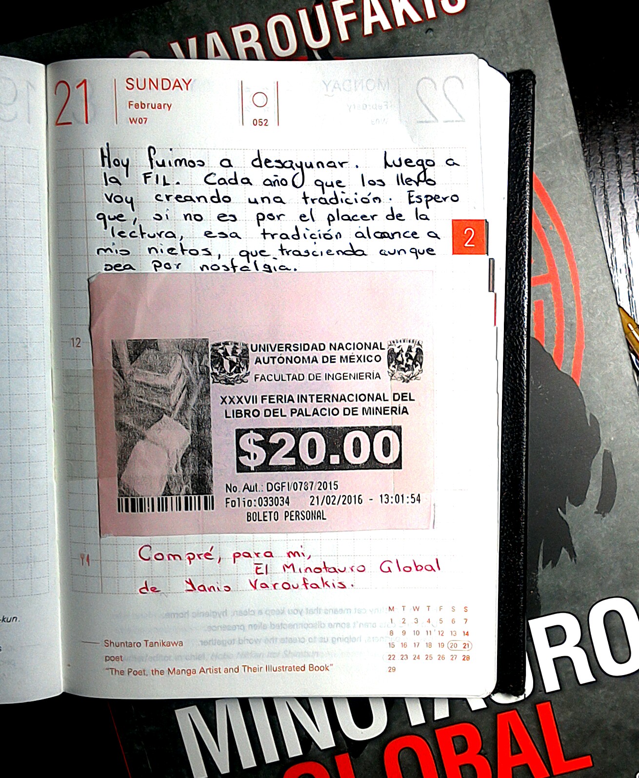 Éste, como cada año, nos levantamos temprano para ir a desayunar. Platicamos sobre los libros que adquirían. Unos ya sabían nombre, autor y editorial. Otro se mantenía expectante sobre lo que vería. «Cuando sepa te digo». Los demás no tenían idea.