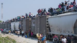 Migrantes centroamericanos viajan en México sobre «La Bestia», buscando llegar a los Estados Unidos.